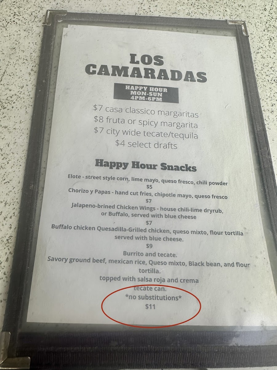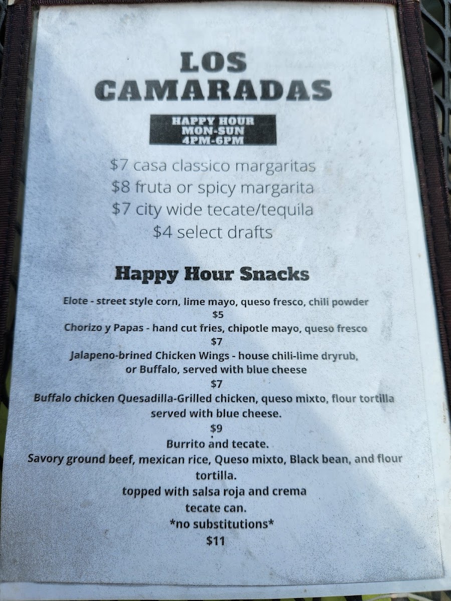 Welcome to Los Camaradas, a vibrant culinary haven in the heart of Philadelphia's Graduate Hospital neighborhood. The menu presents a delightful array of authentic Mexican dishes, showcasing the rich flavors of this beloved cuisine. Start your journey with the Los Camaradas Salad, a refreshing mix of heart of palm, avocado, and crispy tortilla, perfect for setting the tone. For taco lovers, the selection is a highlight; try the Baja Fish Tacos with tempura tilapia or the indulgent BBQ Shortrib Tacos—both are bursting with flavor and creativity.